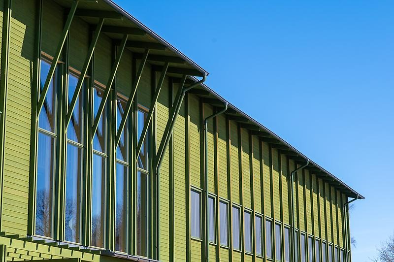 Kommunens äldsta skolbyggnad där både taket och den vackra fasad renoverats.