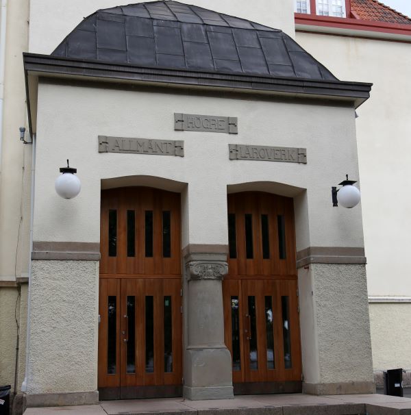 Den kände skolarkitekten Georg A Nilsson, Stockholm och Jönköpingsarkitekten August Atterström utformade denna pampiga läroverksbyggnad som blev kommunalt gymnasium höstterminen 1915. Sedan dess har många generationer sprungit ned för de breda stentrapporna med studentmössa! I huset finns en stor aula. De intilliggande tennishallarna är föreningsägda men nyttjas även i skolans idrottsundervisning.