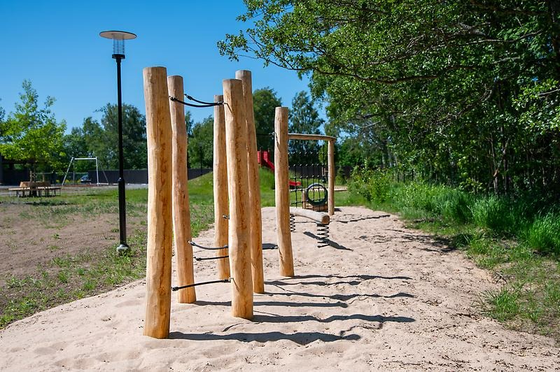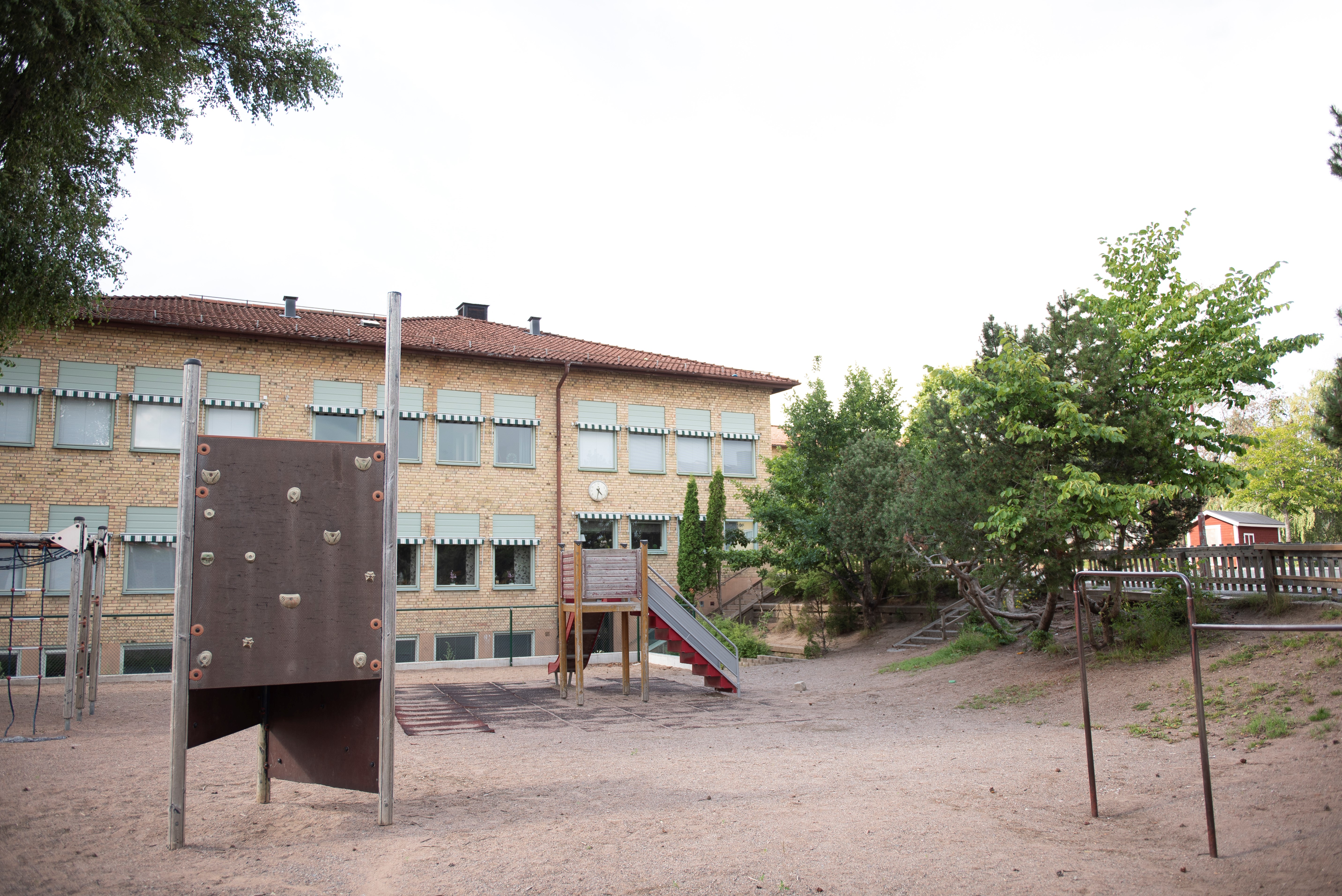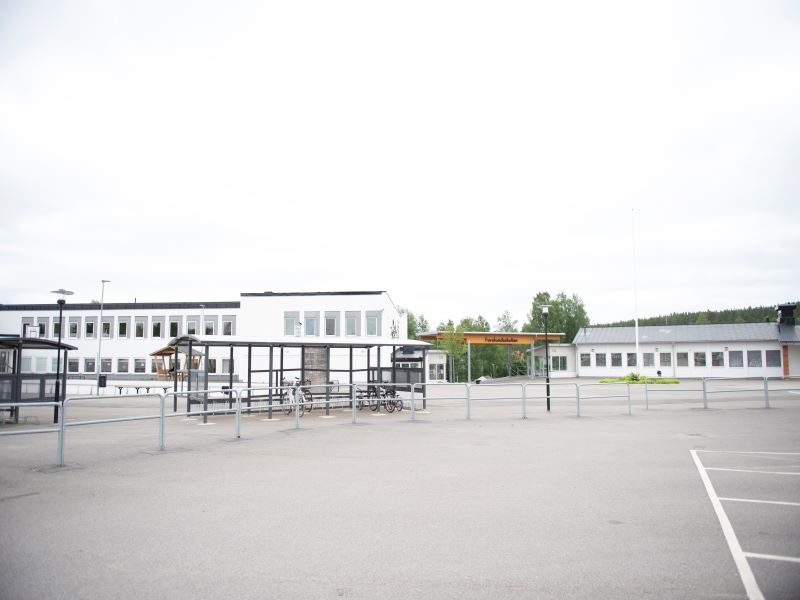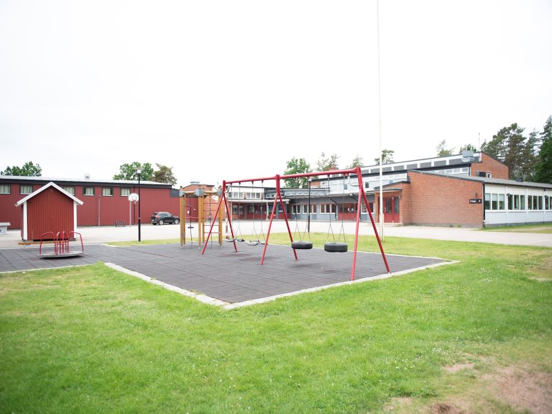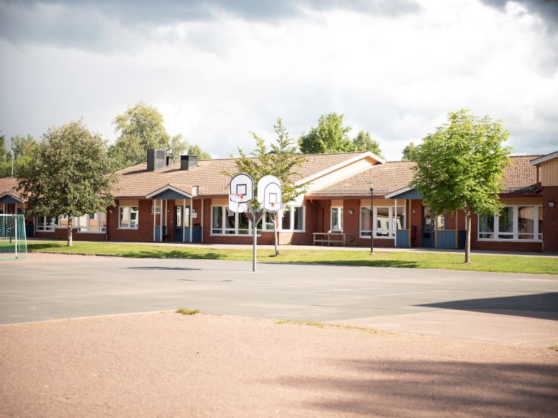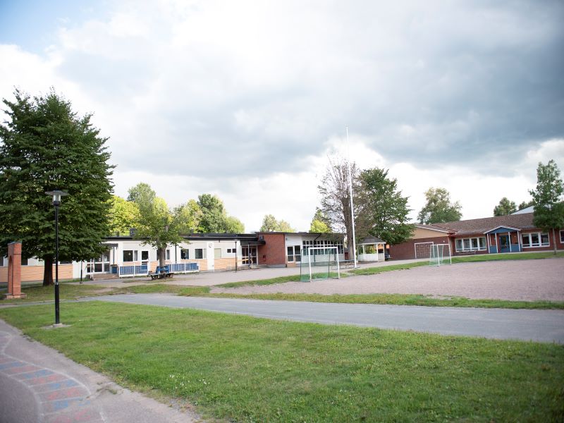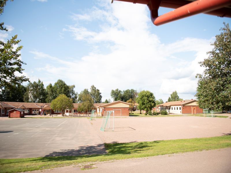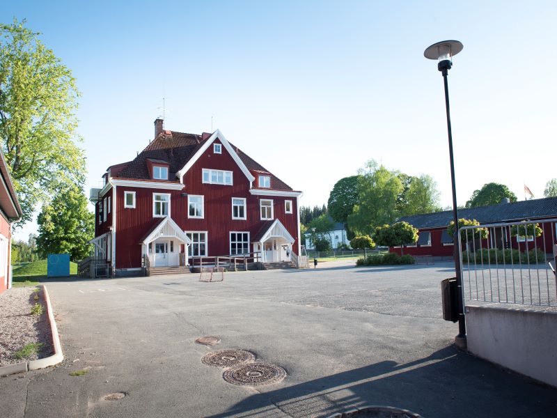 Hela byggnaden har nyligen fått ett nytt energisystem. Många menar att det är precis så här, intill ängarna och skogen som en skola på landet ska ligga. Trivsam skolgård med generösa ytor där underlag av gräs, grus och asfalt inbjuder till olika aktiviteter.