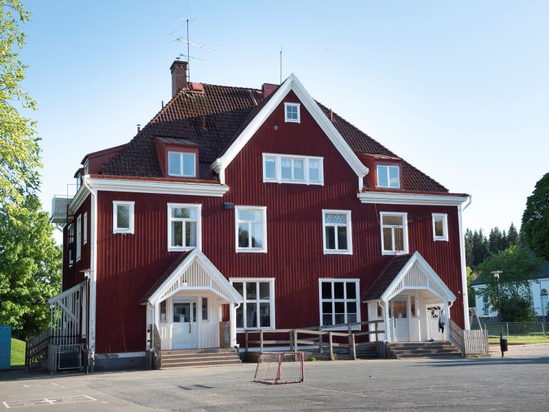 Kommunens äldsta skolbyggnad där både taket och den vackra fasad renoverats.
