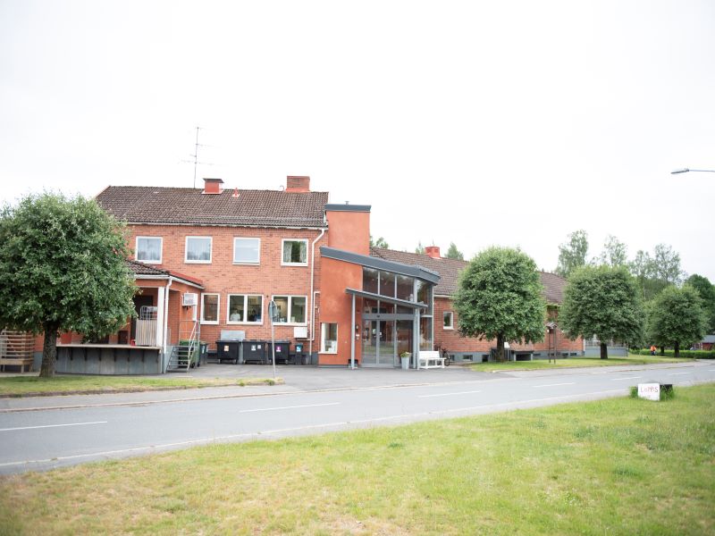 En gedigen tegelbyggnad från 1950-talet utgör den ursprungliga stommen i detta fina äldreboende.