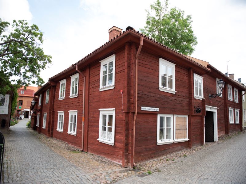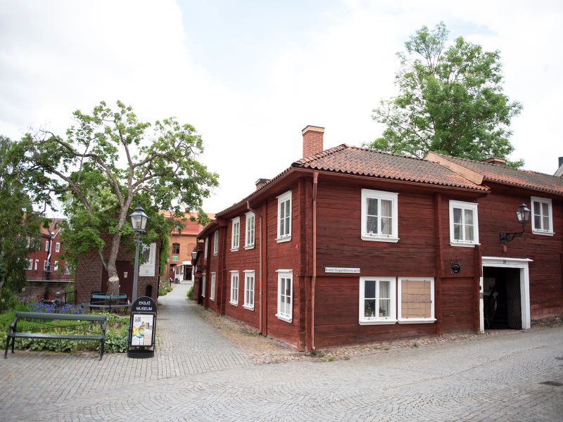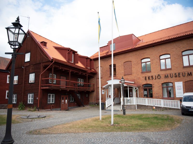 Den röda längan i skiftesverksteknik uppfördes 1830 som stall på Ränneslätt, som 1879 flyttades in till Eksjö.